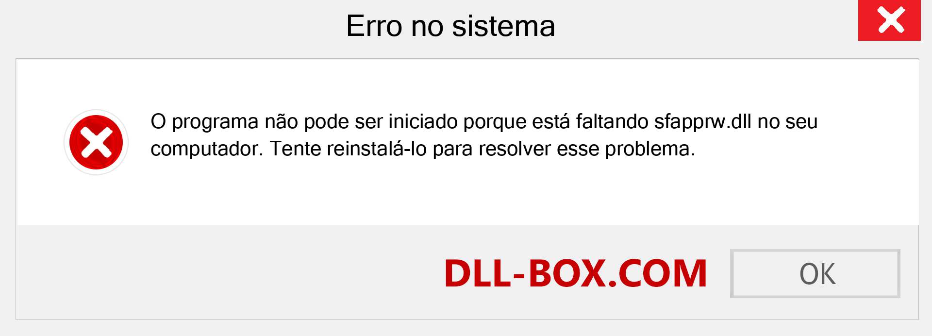 1. O programa não pode ser iniciado porque está faltando sfapprw.dll do seu computador. Tente reinstalar o programa para resolver este problema.